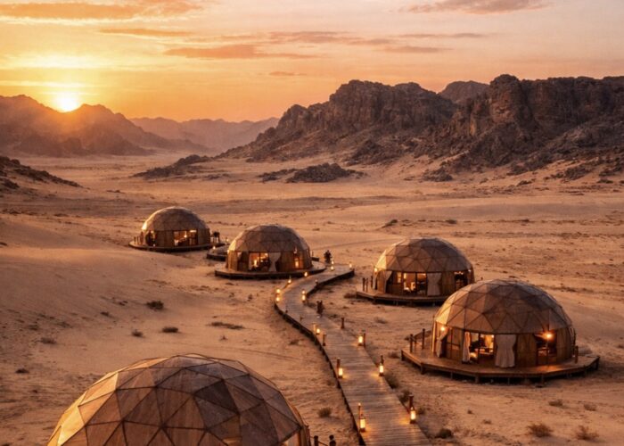 Sunrise yoga, guided meditation, therapeutic sand baths, and open-air massages. A complete disconnection in the natural setting of the Sahara.
